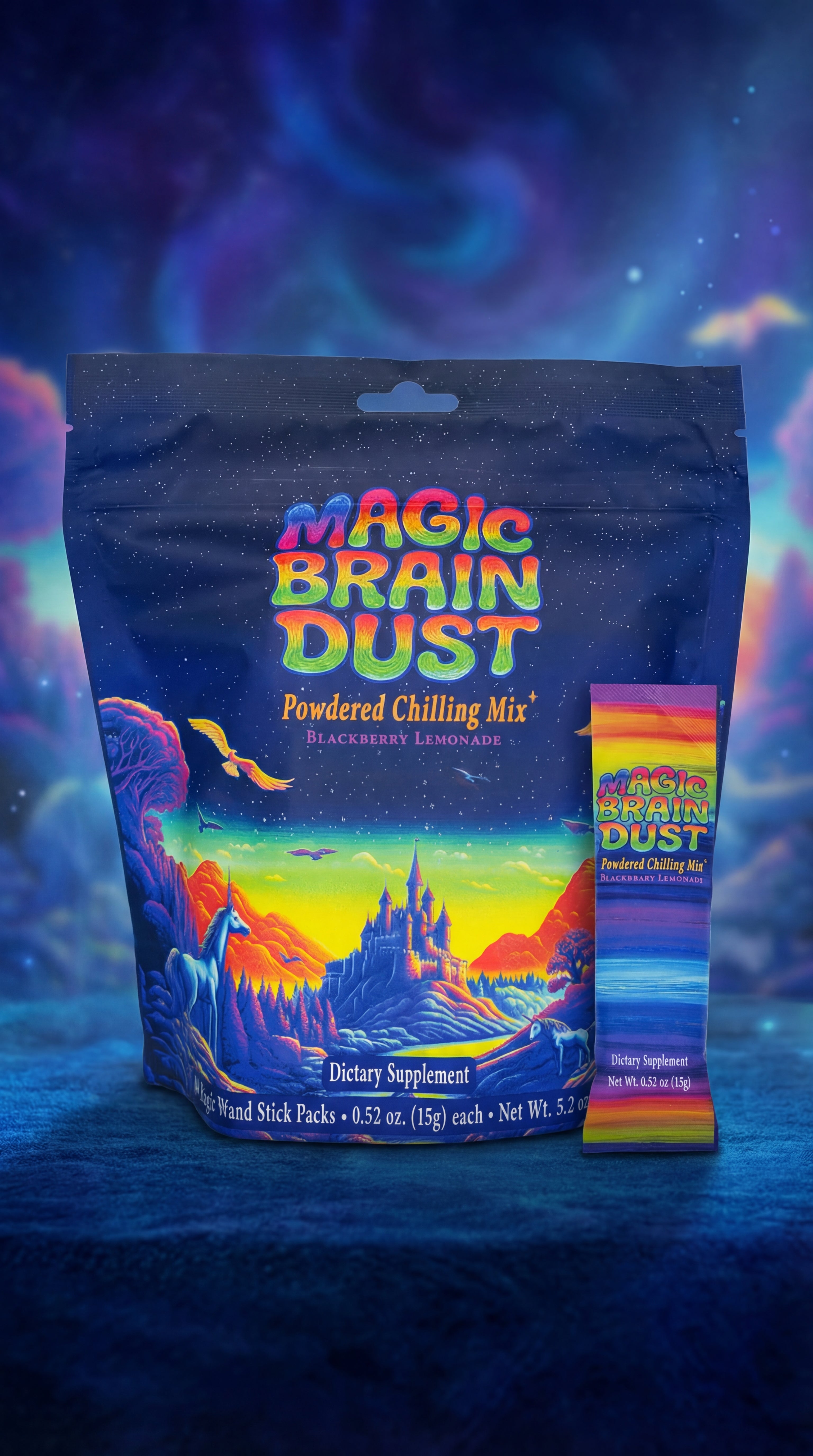 Magic Brain Dust is a functional powdered drink mix designed to support calm, mood balance, and mental clarity using carefully selected ingredients.